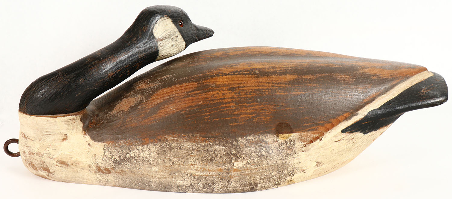 Preening Canada Goose by Gordon A. Lcorn, DU decoy, GE, solid wood, original paint, 22'' OAL. Grade: Excellent - Value: 30 to 60