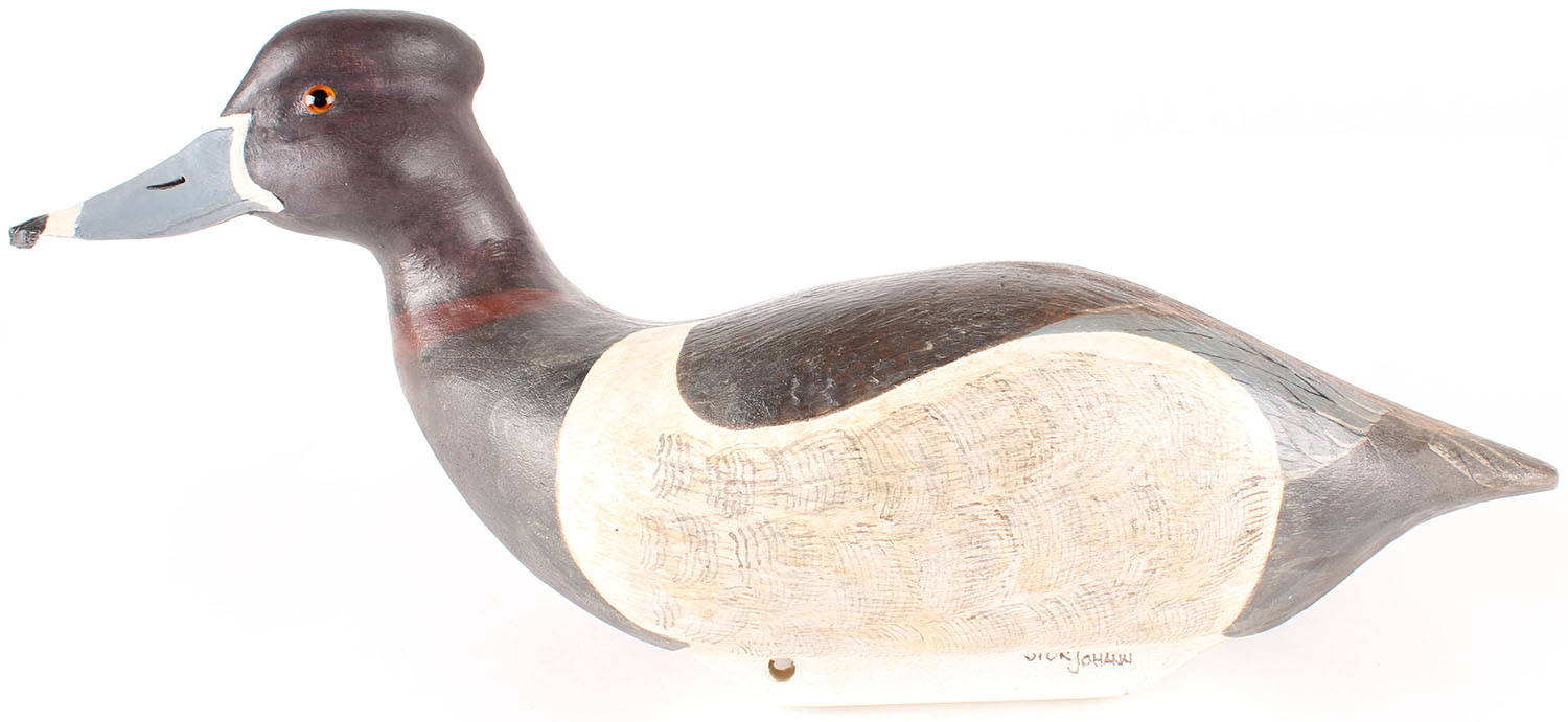 Swimming Ringneck Drake by Stor Johann, GE, hollow wood, original paint, 16 1/2'' OAL. Grade: Excellent ++ - Value: 70 to 200