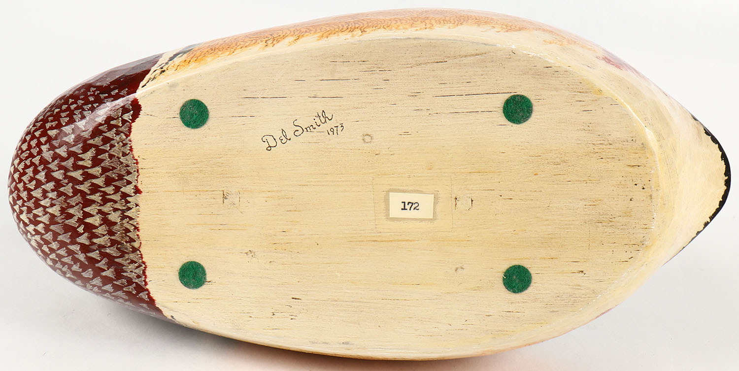 Woodduck Drake by Del Smith, GE, hollow wood, mint original paint with lots of feather details, 11 1/2'' OAL. Grade: Excellent - Value: 20 to 60
