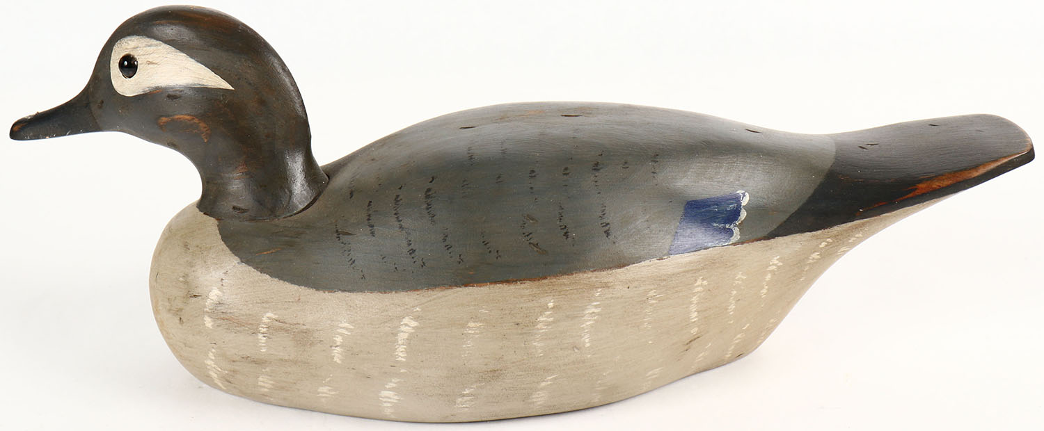 Woodduck Hen by R. Connolly, GE, solid wood, excellent original paint, signed & branded on bottom, 15'' OAL. Grade: Excellent - Value: 20 to 60