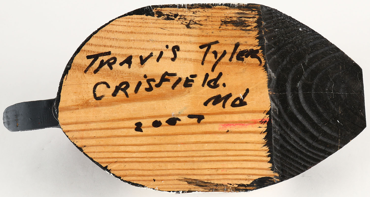 Redhead Drake by Travis Tyler, Crisfield MD, no eyes, solid wood, original paint, 12'' OAL. Grade: Excellent - Value: 20 to 60