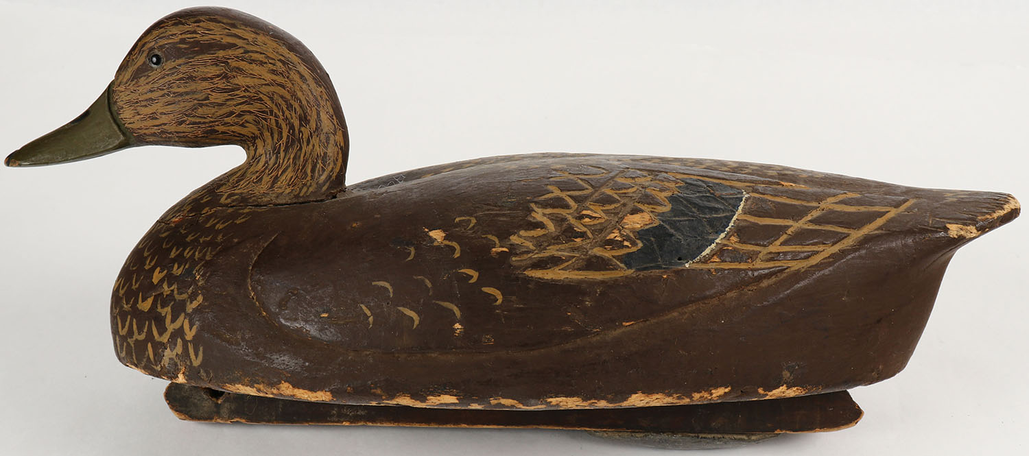 Black Duck by Wildfowler Decoy Co?? Old Saybrook Conn., GE balsa wood, repainted, no stamp on bottom, 14 1/2'' OAL. Grade: Very Good ++ - Value: 20 to 60