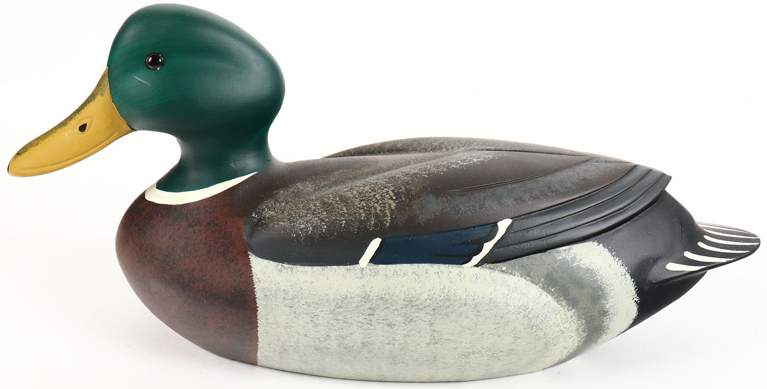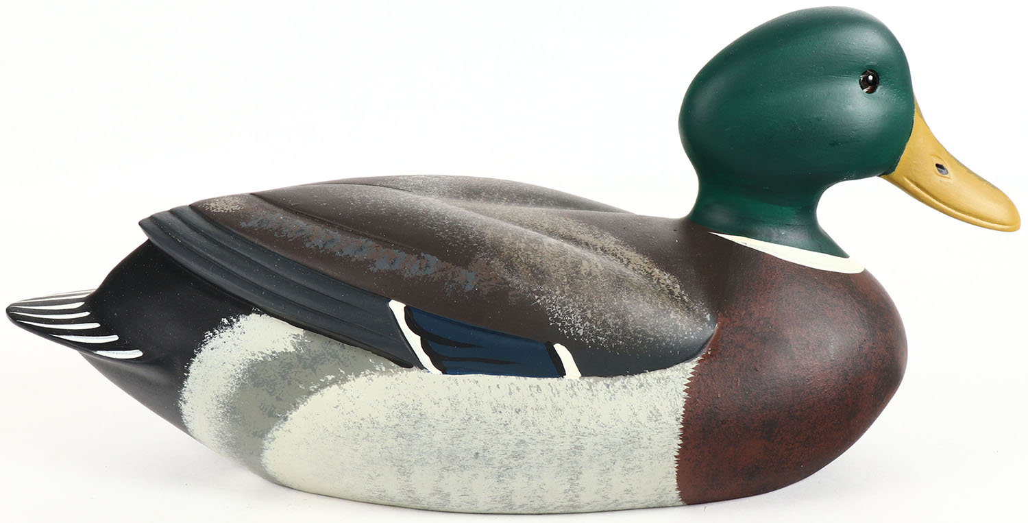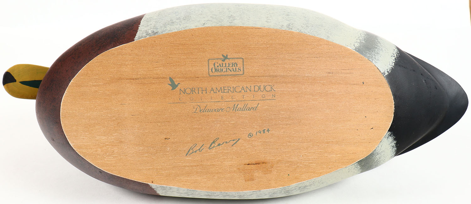 Mallard Drake by Bob Berry, 1984, GE, solid wood, original paint, 13 1/2'' OAL. Grade: Excellent ++ - Value: 20 to 60