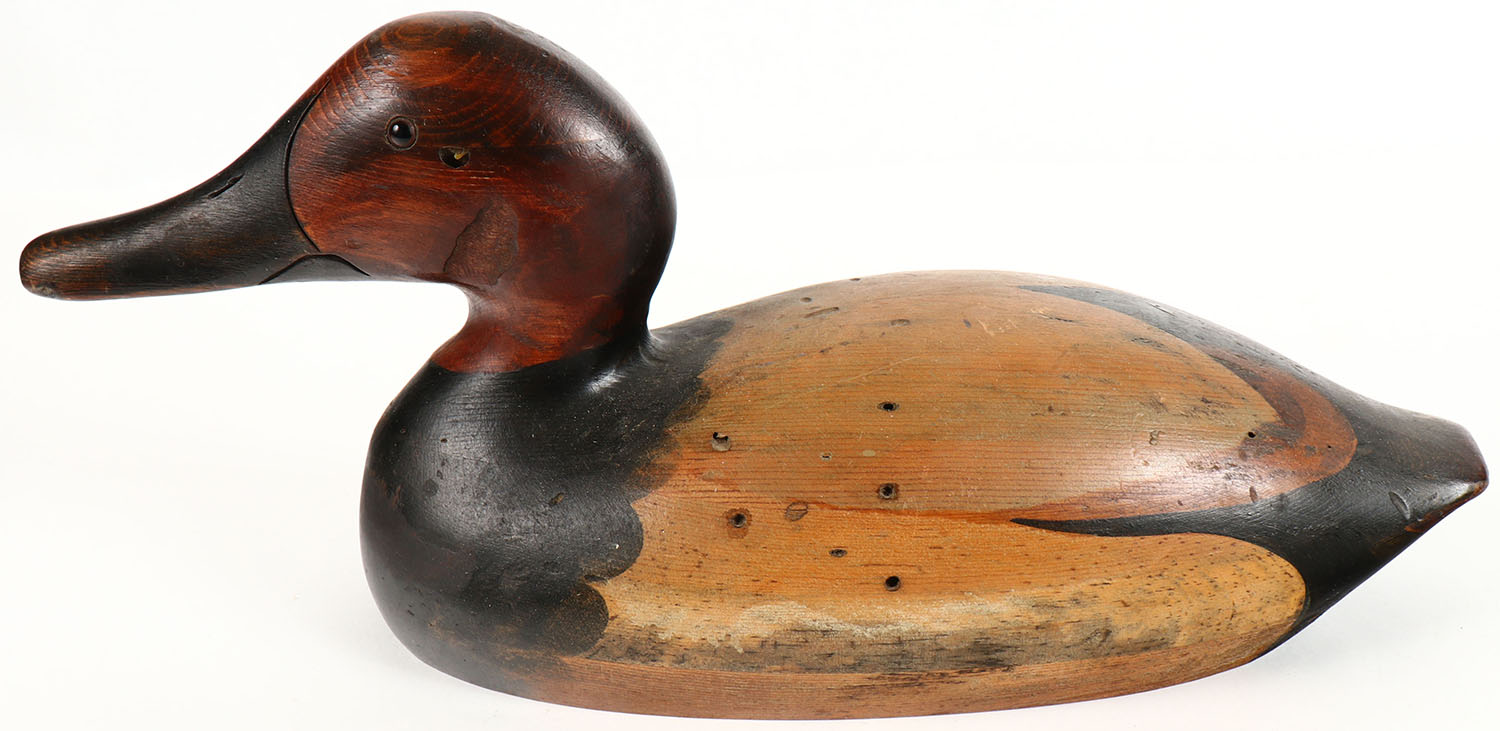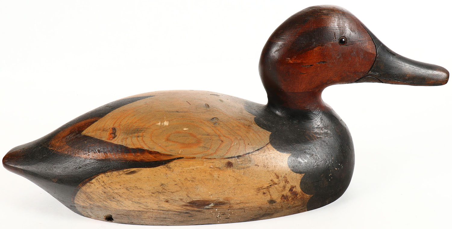 Canvasback Drake by Tom Taber, GE, solid wood, original paint, 15 1/2'' OAL. Grade: Excellent - Value: 30 to 100