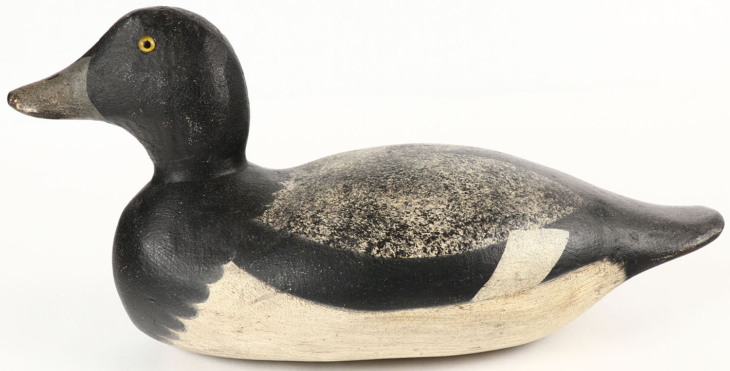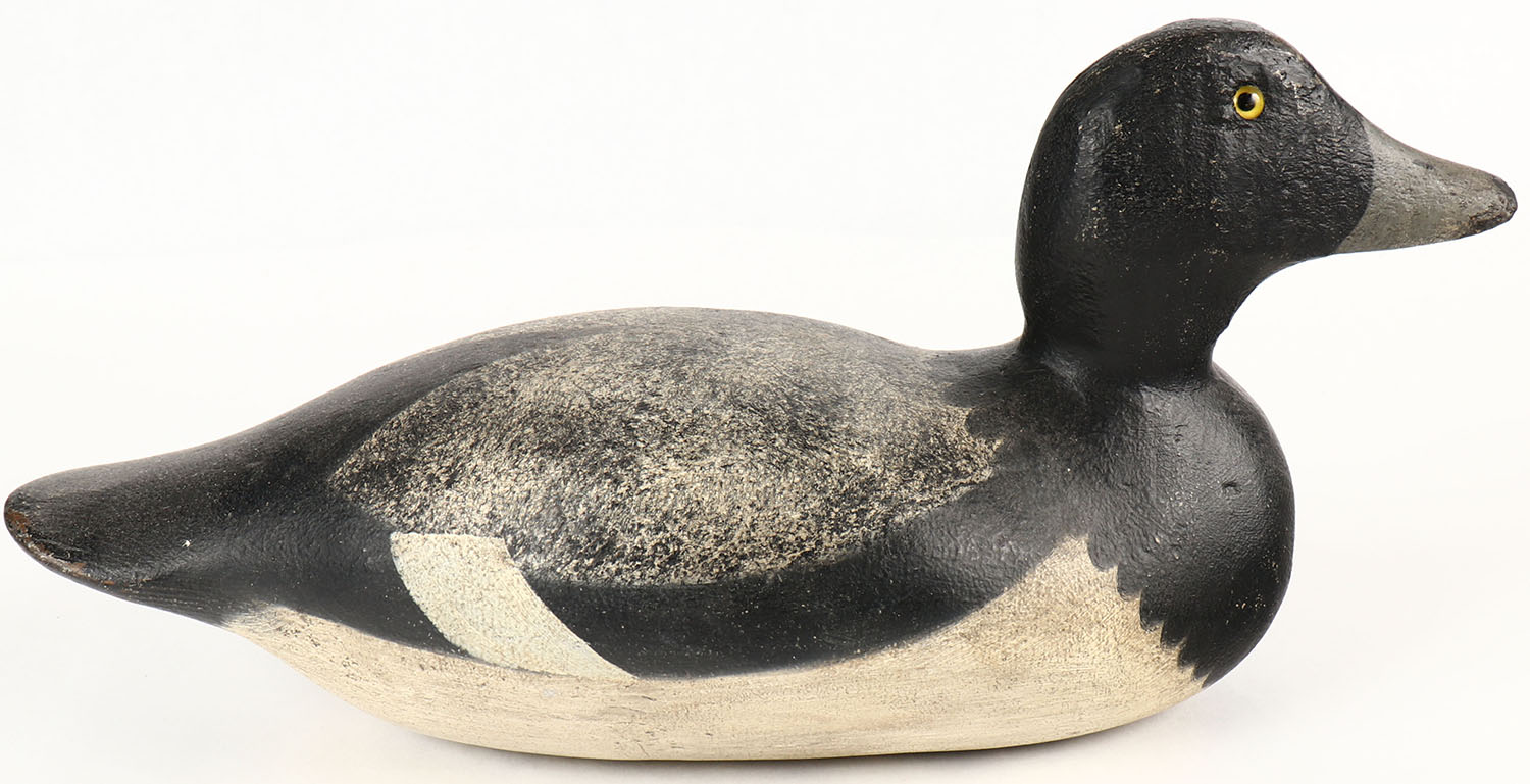 Bluebill Drake by Mason Decoy Company, Detroit, MI, 1896-1924, Standard Grade, glass eyes, original paint, solid wood. Grade: Excellent - Value: 70 to 200