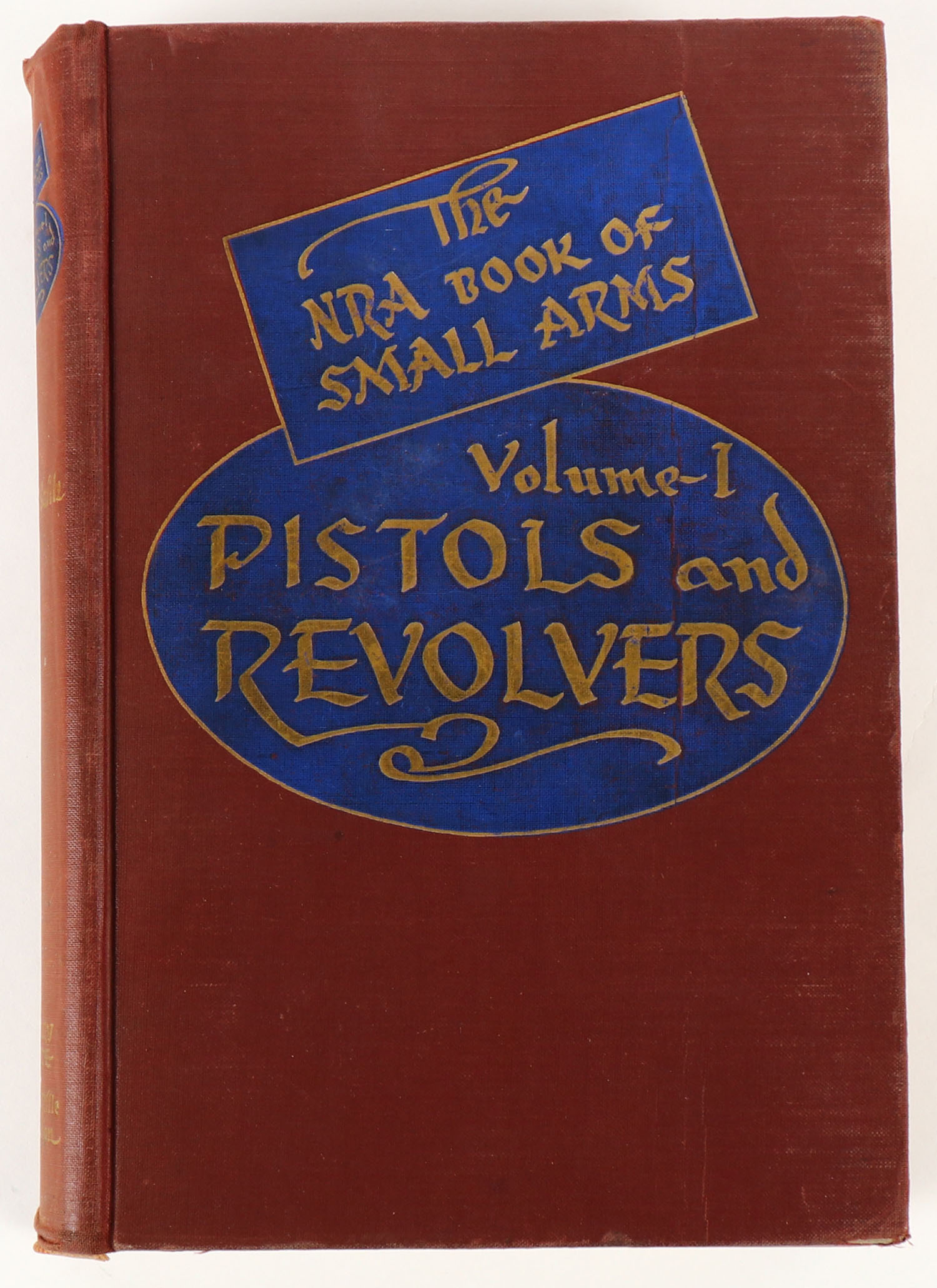 The NRA Book Of Small Arms Volume 1 Pistols by W.H.B. Smith, 1953, 6 1/2'' x 9 1/2'', 638 pages, pages have some age soiling, binding is starting to separate at the hardcover, b/w images, hardcover good with age soiling. Grade: Good + - Value: 10 to 30