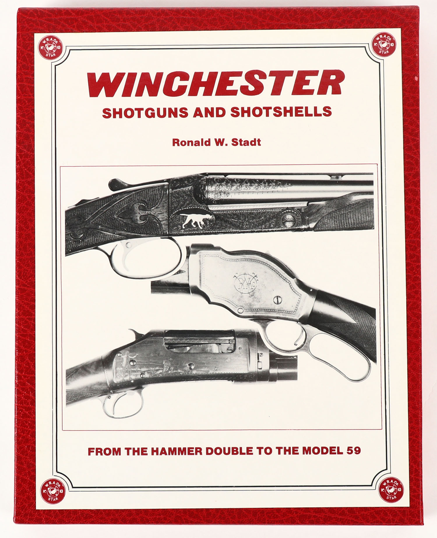 Winchester Shotguns And Shotshells by Ronald W. Stadt, 1984, signed 1st edition, 9'' x 11 1/2'', 184 pages, pages clean, binding tight, color and b/w images. Hardcover mint, dust jacket mint, hardcover sleeve mint. Grade: Mint - Value: 25 to 150