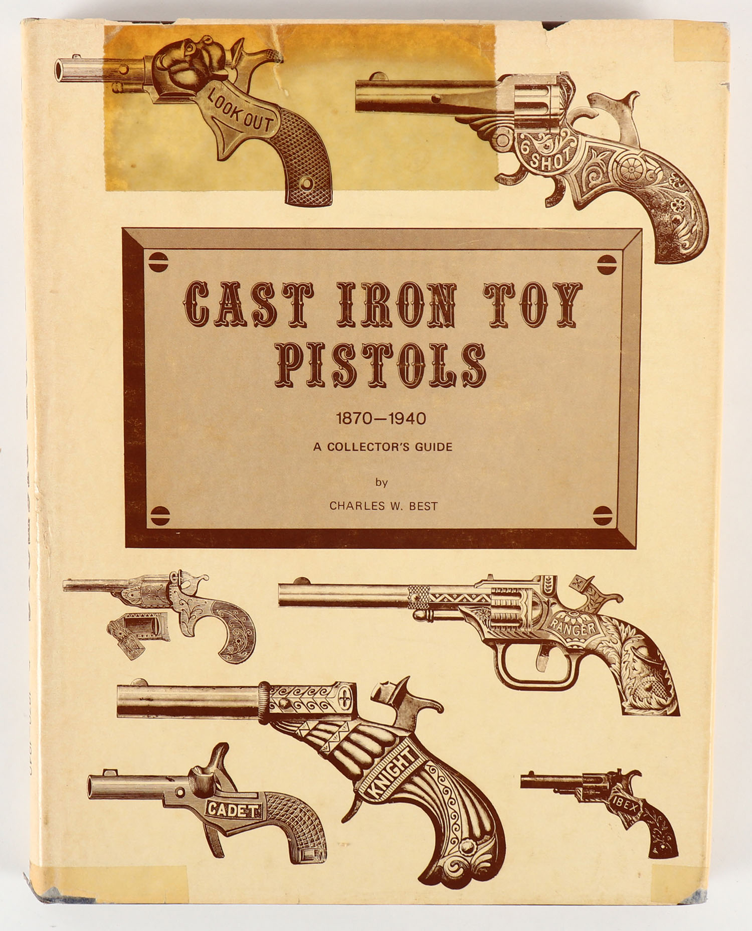 Cast Iron Toy Pistols 1870-1940 A Collectors Guide by Charles W. Best, 1973, signed first edition, 216 of 2000 copies 217 pages, pages clean, binding tight, hardcover excellent, dust jacket very good with slight age soiling and tape. Grade: Excellent - Value: 75 to 125
