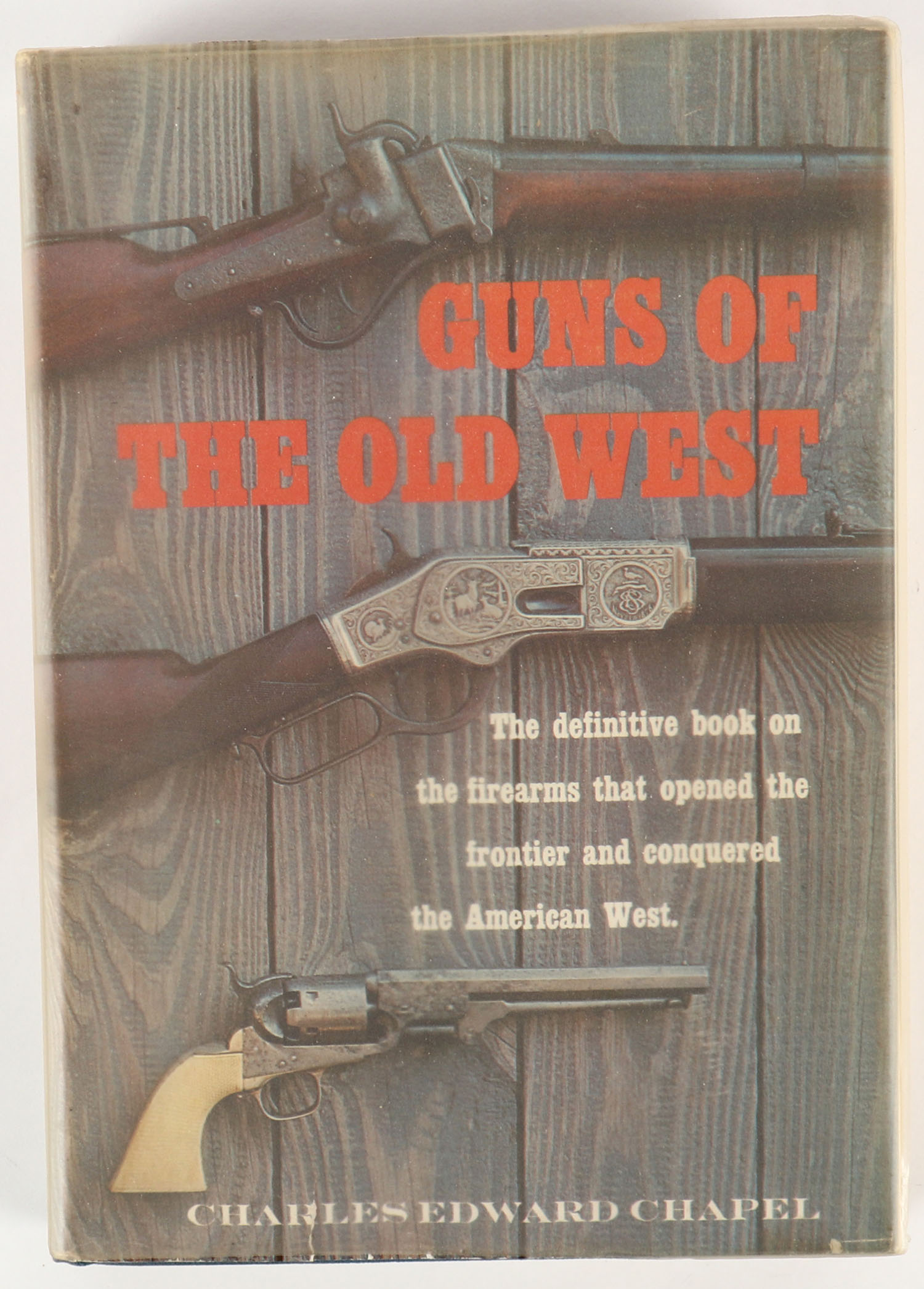 Guns Of The Old West The Definitive Book On The Firearms That Opened The Frontier And Conquered The American West by Charles Edward Chapel, 1961, 7 1/2'' x 10 1/2'', 306 pages, b/w images, pages clean, binding tight, hardcover excellent, dust jacket very good with small tear. Grade: Excellent - Value: 2 to 10