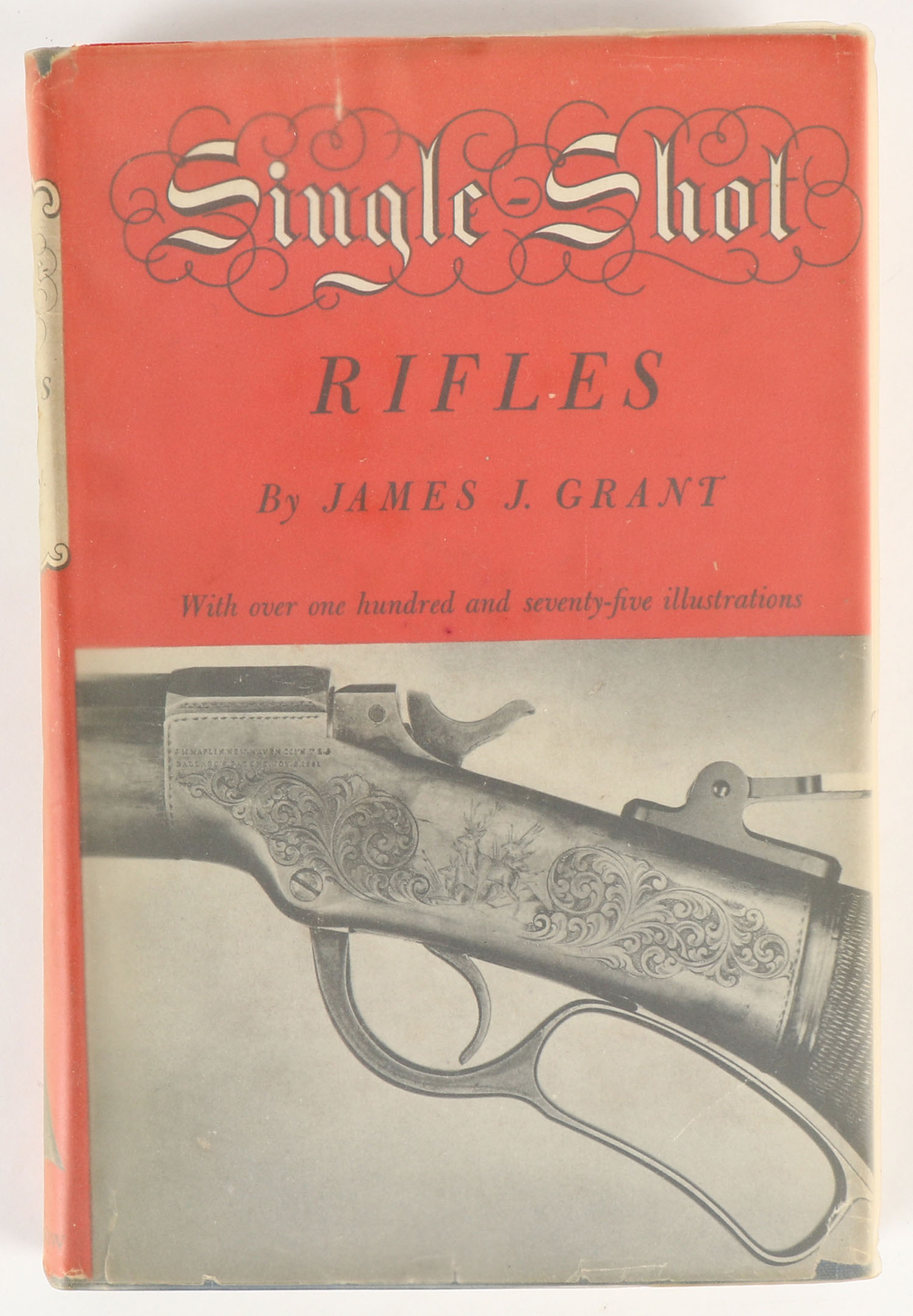 Single Shot Rifles by James J. Grant, 1947, 6 1/2'' x 9 1/2'', 385 pages, pages clean, binding tight, hardcover very good, dust jacket good with small tears on top and bottom edges, plastic cover over dust jacket good. Grade: Very Good + - Value: 25 to 50