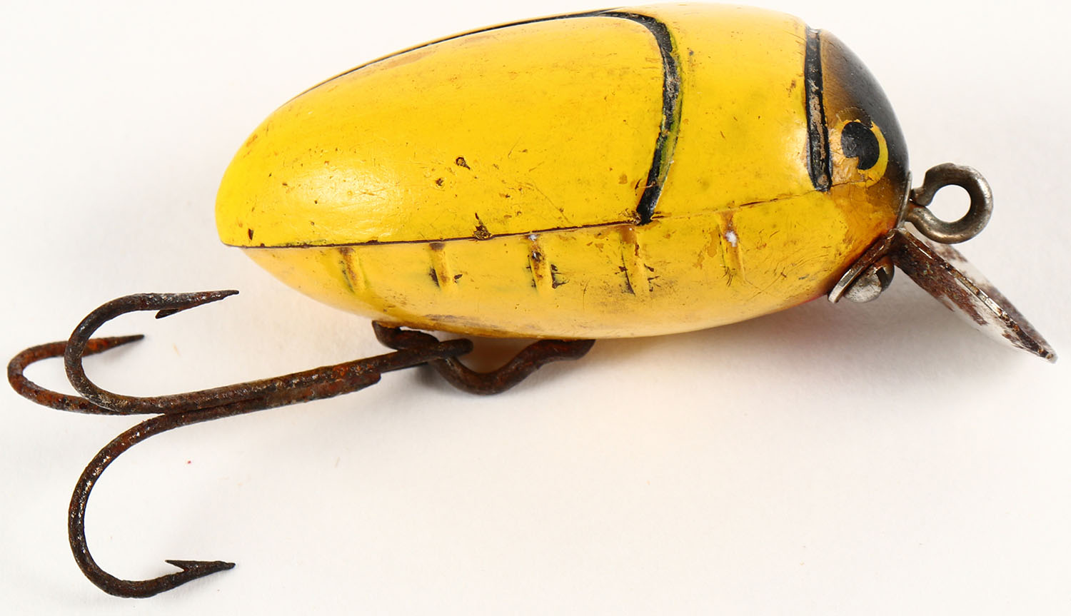 | Millsite, Rattle Bug, yellow & black, single hook. Grade: Exce...