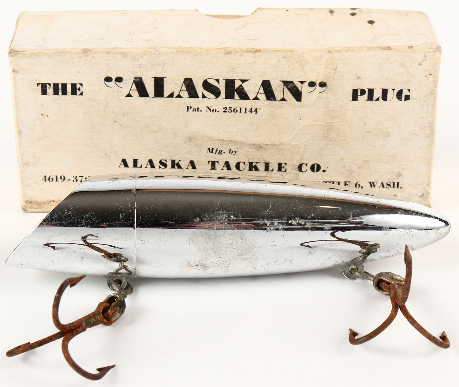 Alaskan Salmon Plug in original box, no eyes, CHROME finish. Grade: Excellent + - Value: 20 to 50