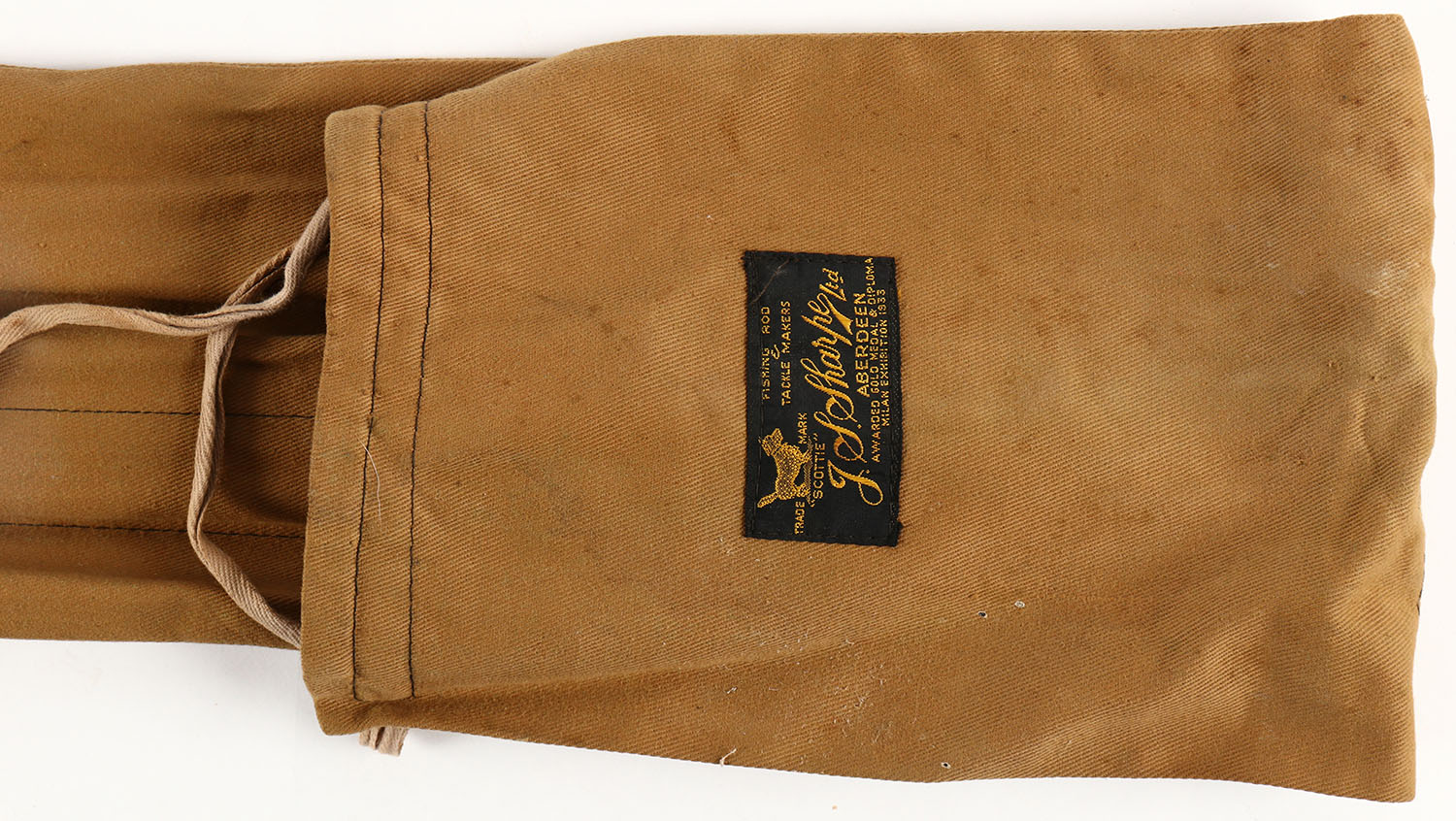 RARE J.S. Sharpee Aberdeen Scottie bamboo fly rod, SN: 9483, 13', 9wt, 3/2, rod is near mint with light wear to a few wraps, cork looks unfished, has wood caps in ferrules, marked cloth bag, Very Rare rod in wonderful condition. Grade: Excellent + - Value: 200 to 600