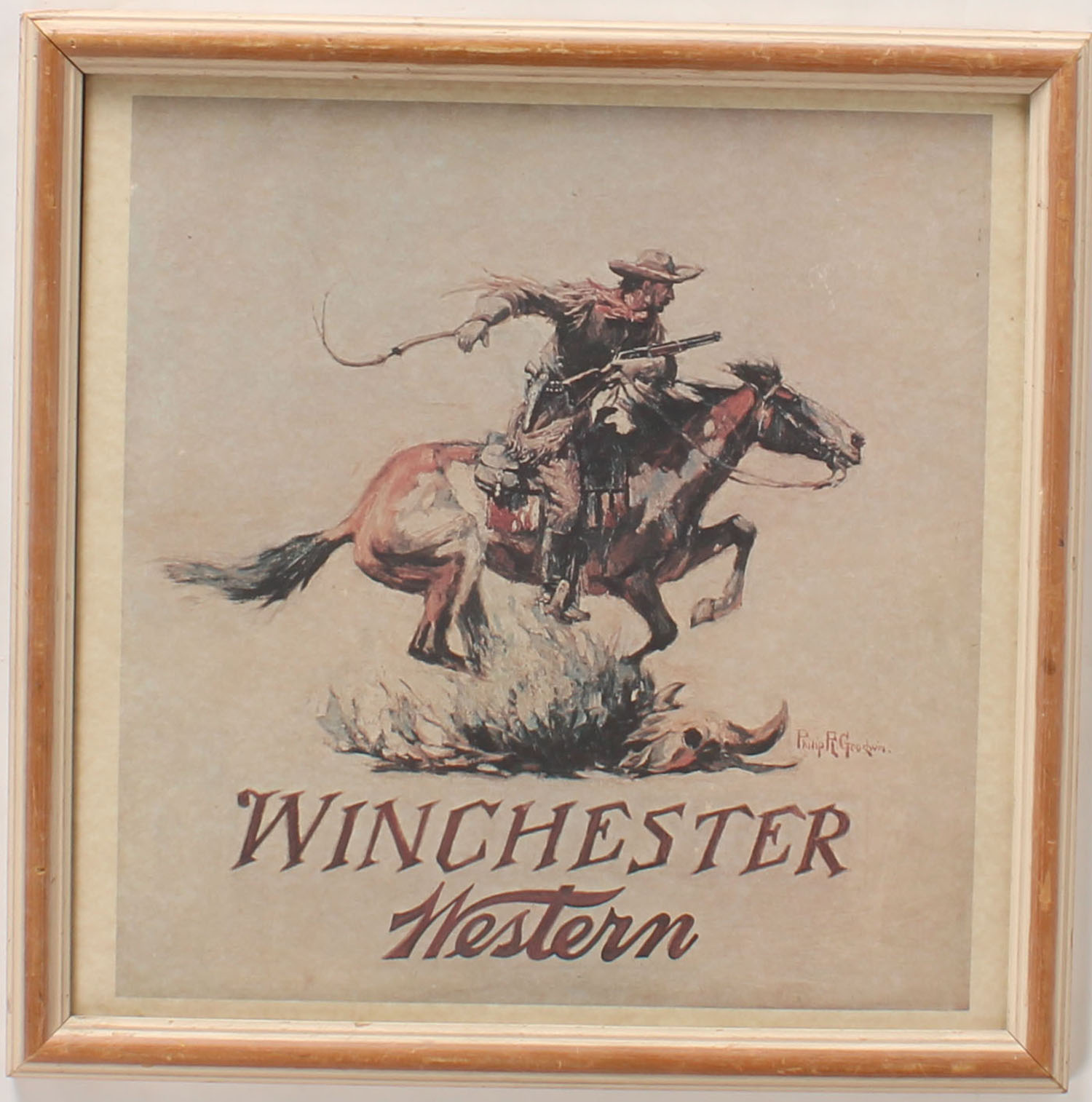 Winchester Western logo by Philip R. Goodwin, frame size 18'' x 18''. Grade: Very Good ++ - Value: 10 to 50