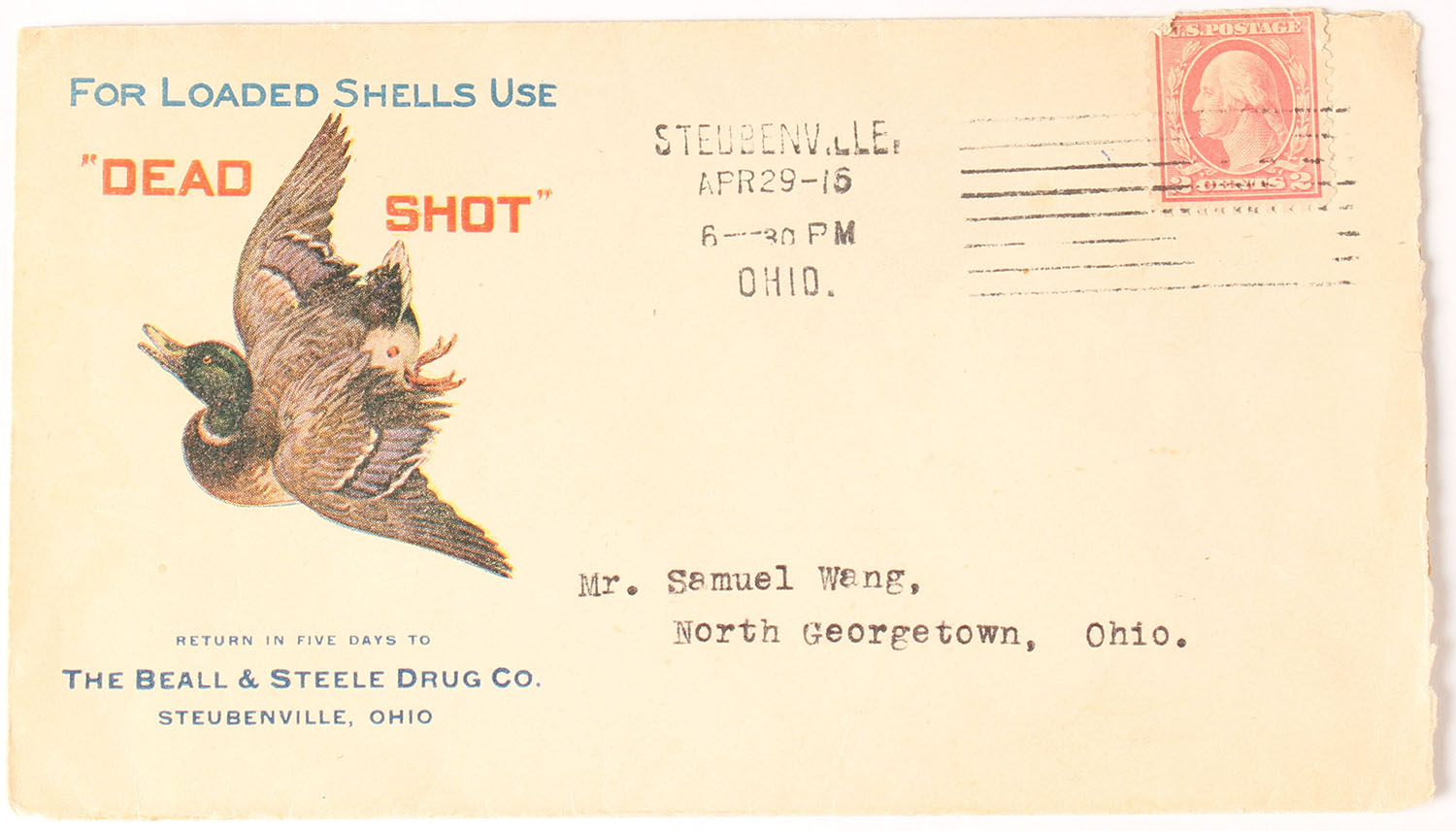 Dead Shot Envelope, dated 19106, pictures full color image of wild falling mallard, very colorful. Grade: Excellent - Value: 50 to 150