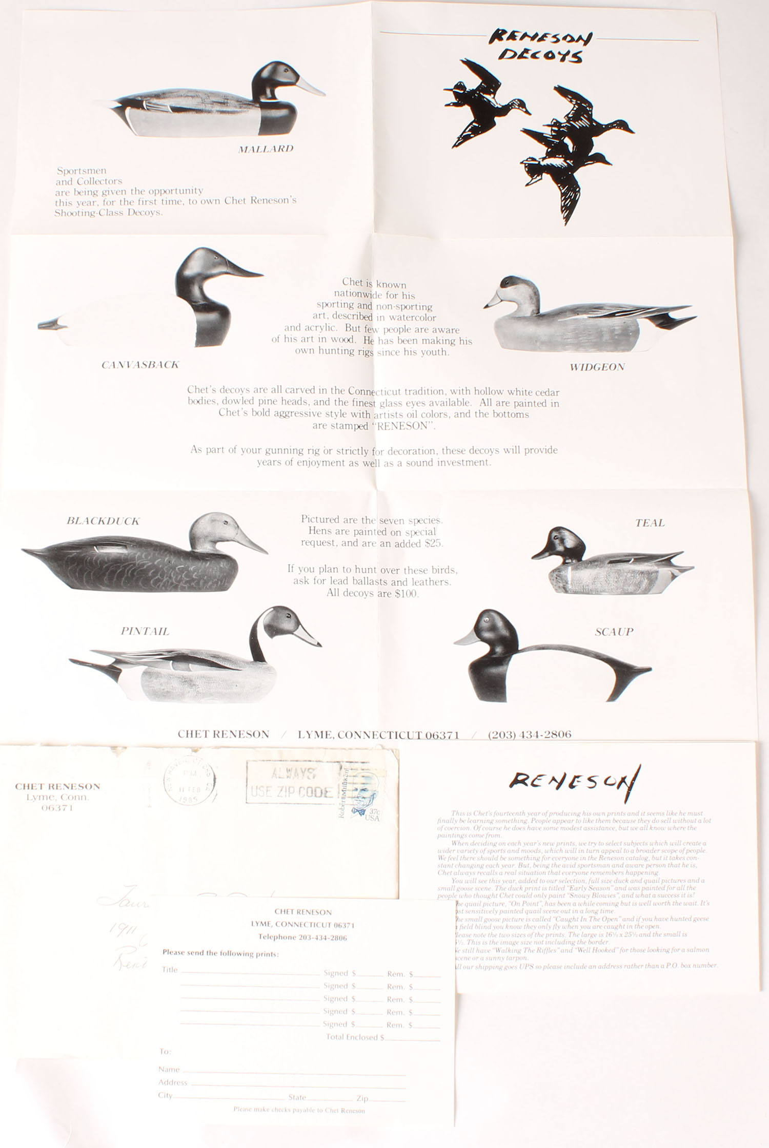 Reneson Hand Carved wood decoy sales brochure with envelope. Grade: Excellent - Value: 2 to 30