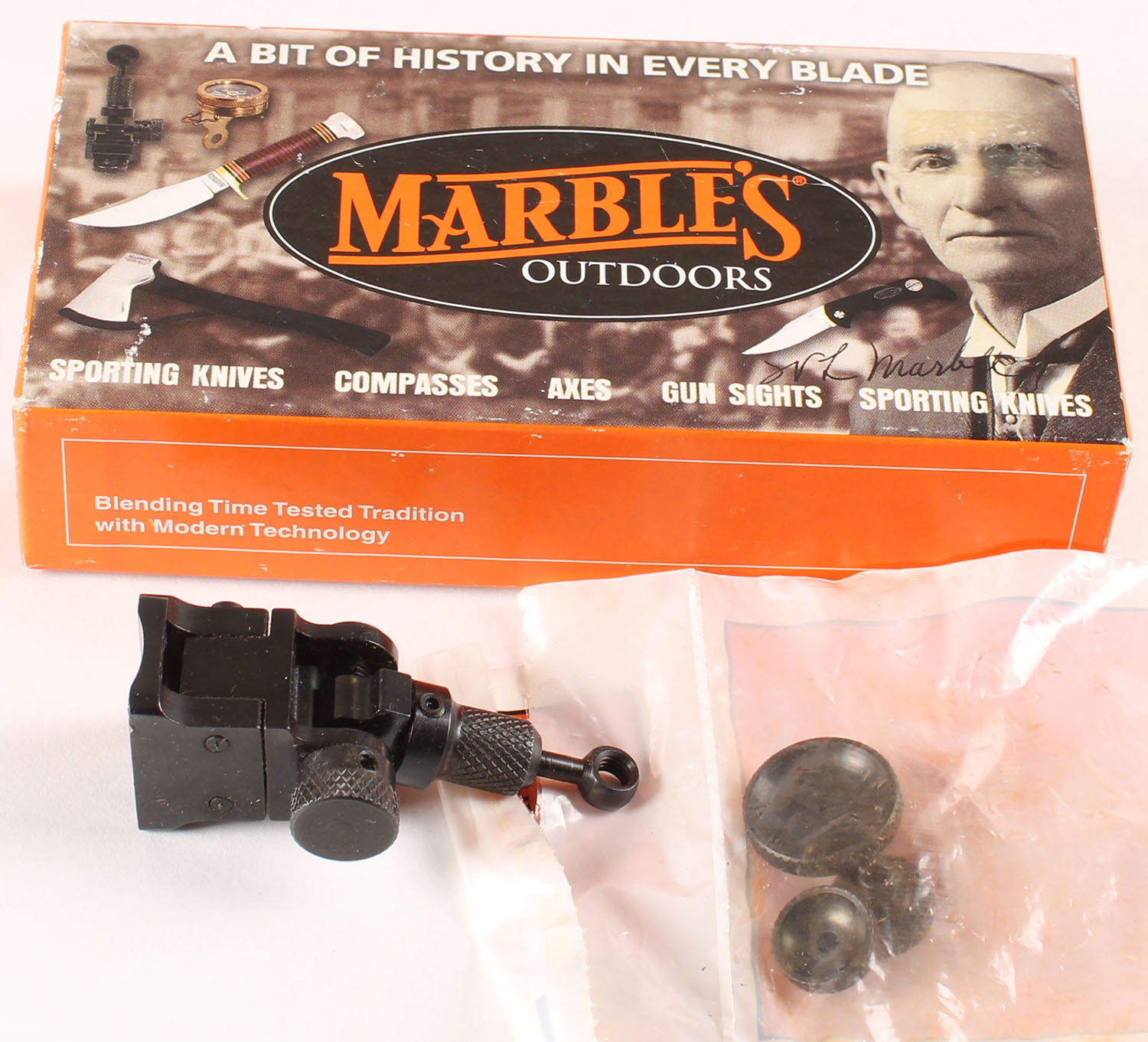 Marbles peep sight, in orignal box, Marlin 336, 444, 1895 and 30AS, solid. Grade: Excellent - Value: 100 to 200