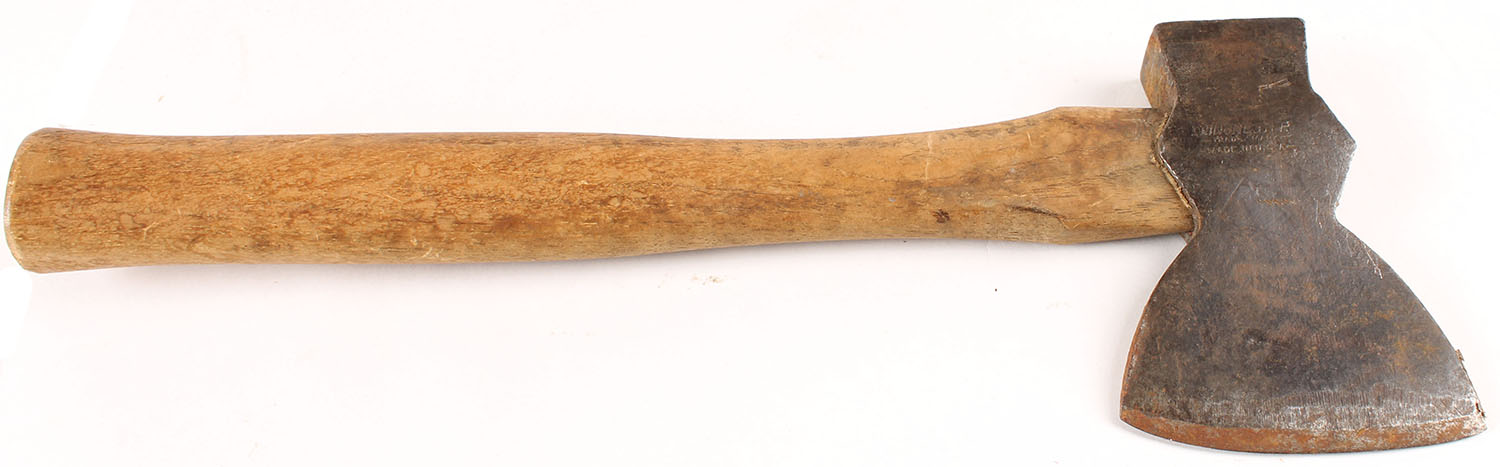 Antique Winchester hatchet with wood handle, 14'' OAL. Grade: Very Good ++ - Value: 20 to 60