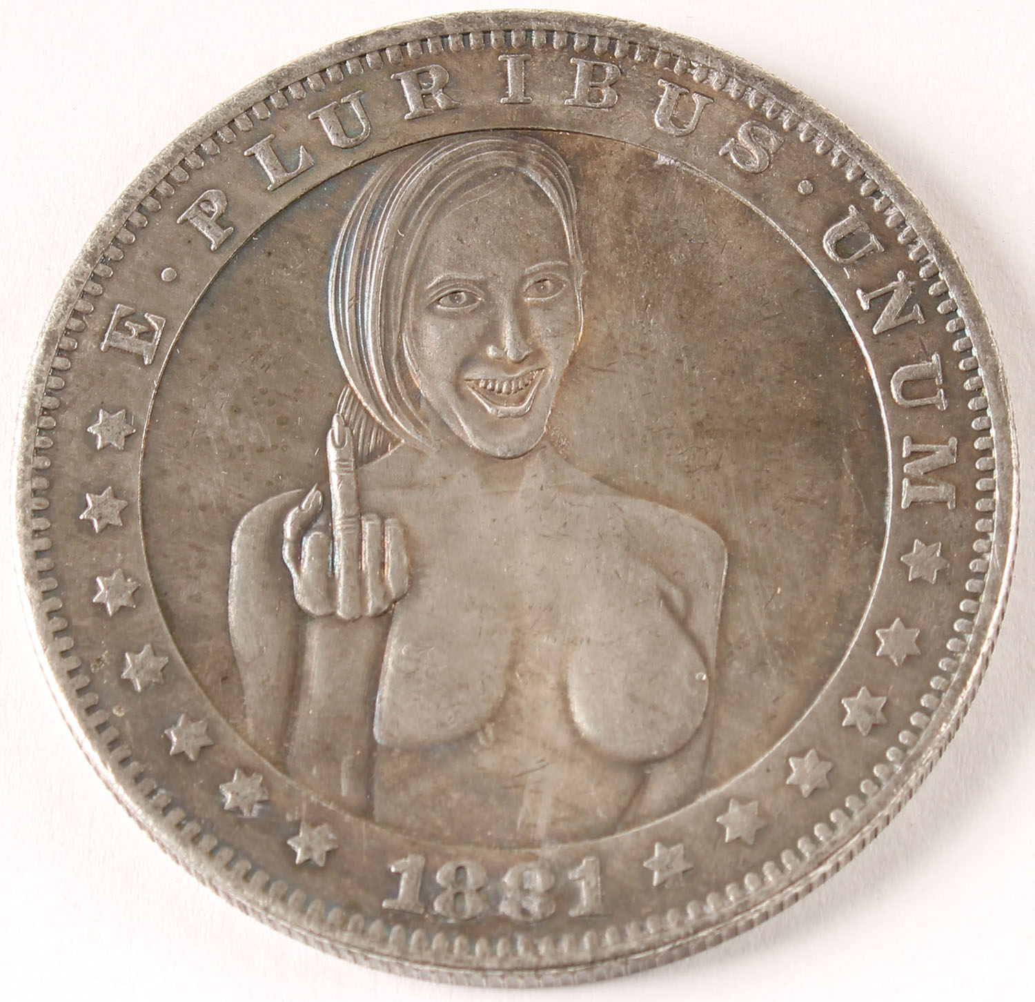 RARE! 1881 nude silver dollar coin with eagle on back. Grade: Excellent - Value: 100 to 400