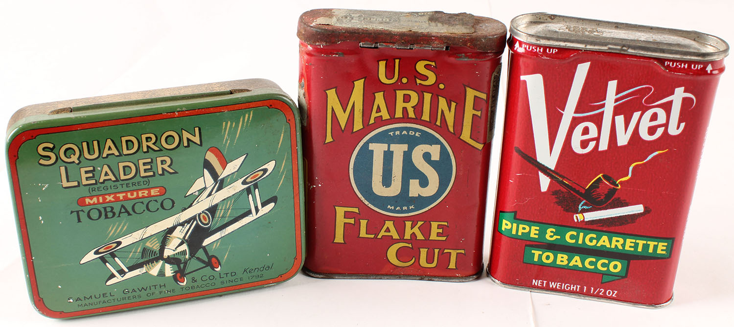 Lot of 3 small tobacco tins, all empty. Grade: Very Good ++ - Value: 10 to 50