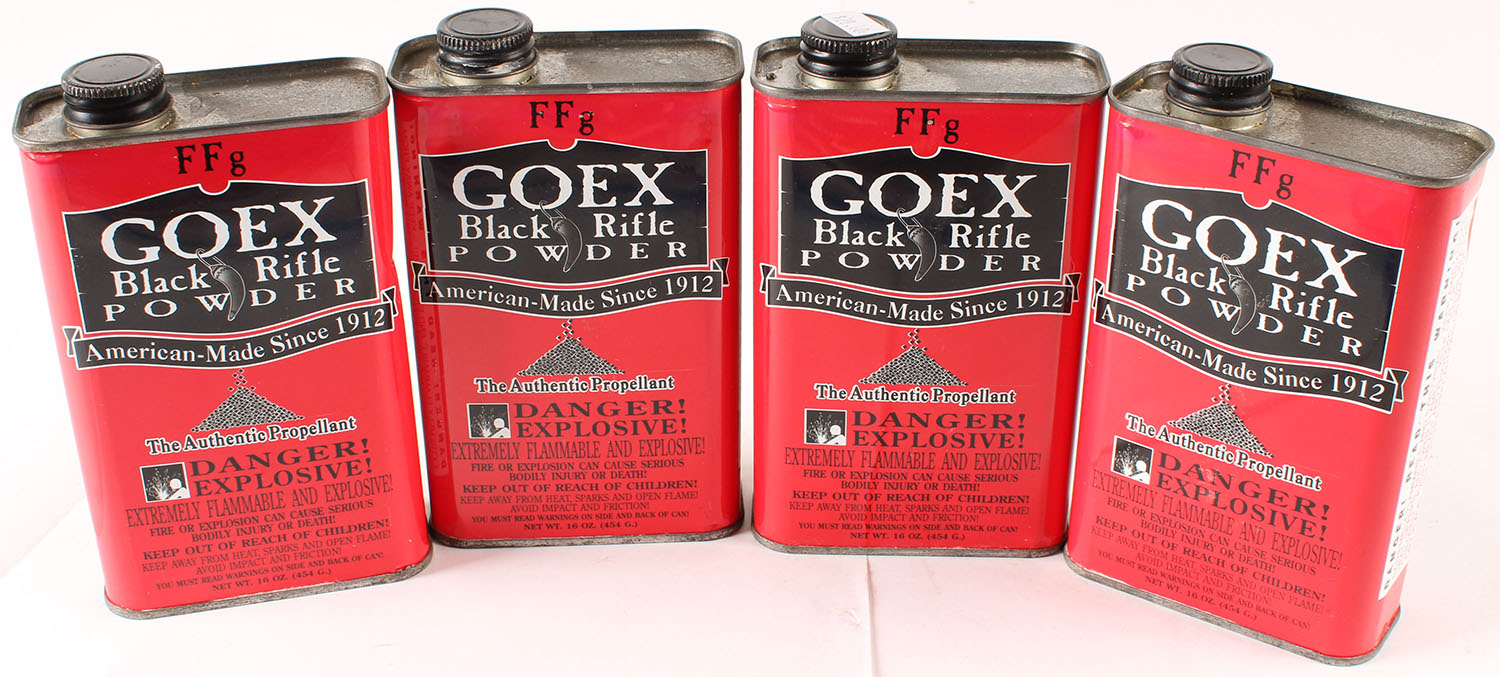 Lot of 4 Goex powder cans, all FULL. Grade: Excellent ++ - Value: 20 to 200