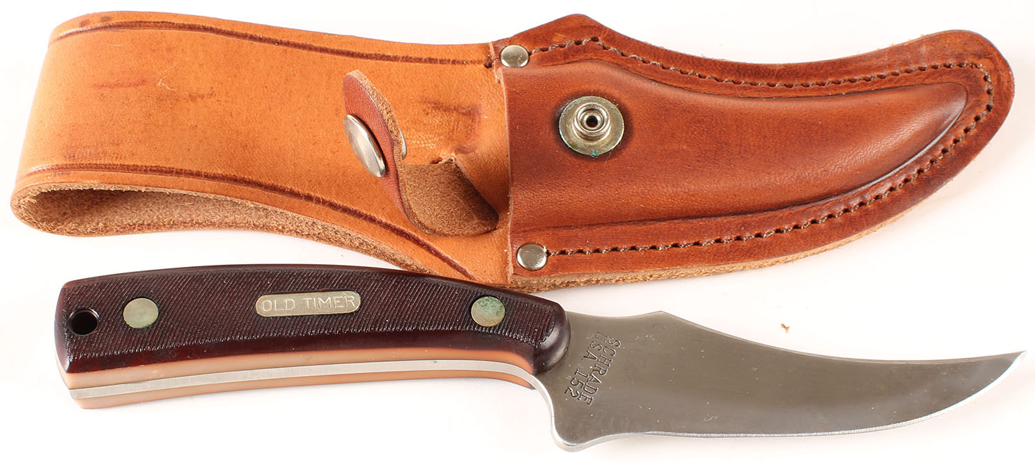Schrade Old Timer knife, has sheath, celliod handle. Grade: Excellent ++ - Value: 30 to 90