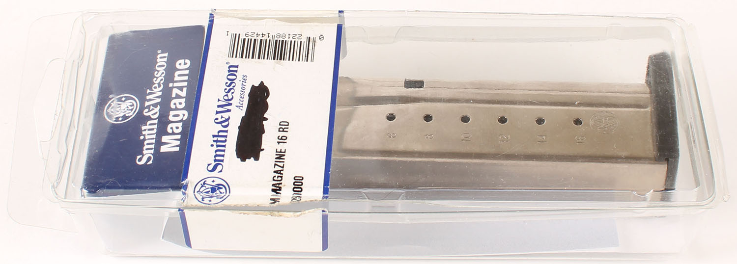 S&W 9mm cal., 16 rd., in its original packaging. Grade: Excellent ++ - Value: 10 to 40