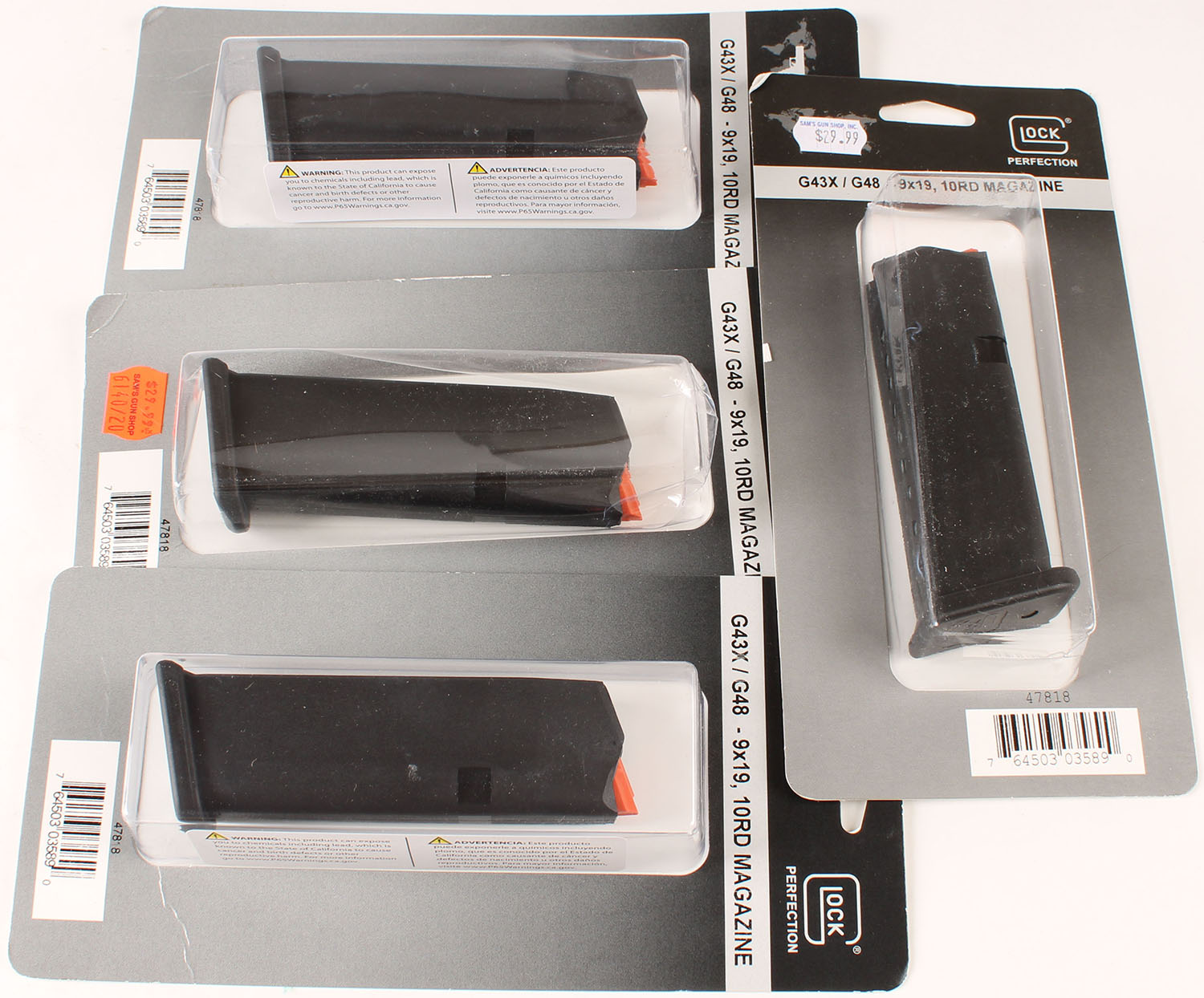 Lot of 4 Glock mags, G43x/48 9x19 10 rd mags. Grade: Excellent ++ - Value: 40 to 100