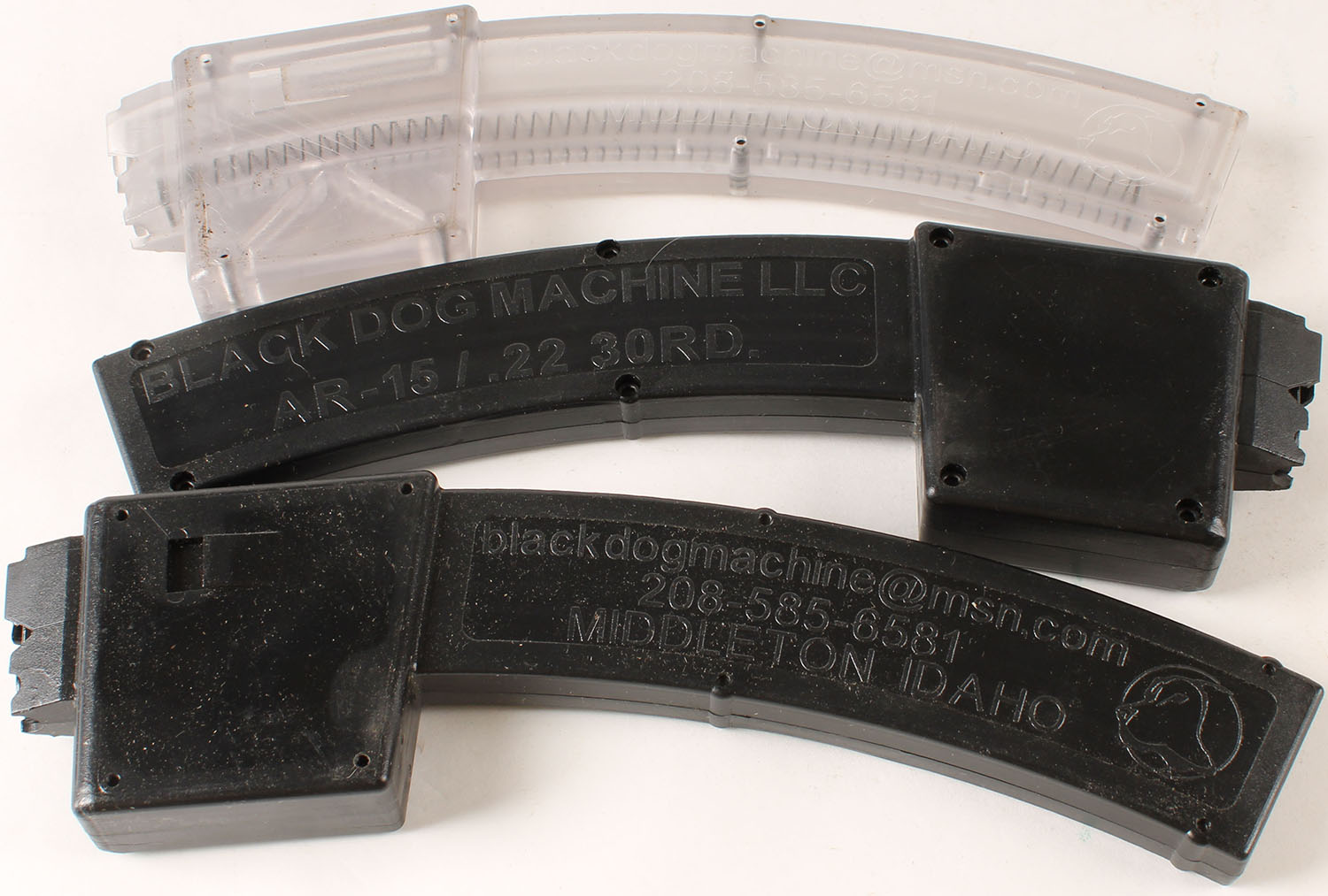 Lot of 3 Black Dog machine, .22 AR-15 mag, 30 rd.. Grade: Excellent - Value: 10 to 30