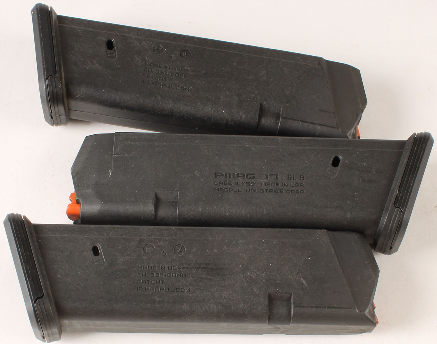 Lot of 3 Magpul Pmag 17 rd 9 mm Glock mags. Grade: Excellent - Value: 16 to 50