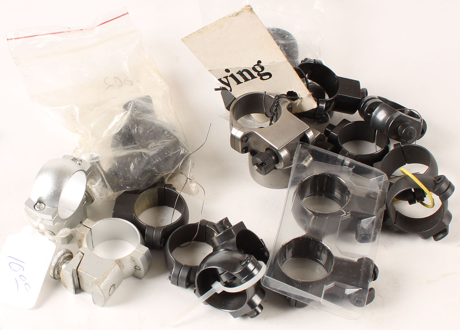 Lot of 10 ring scope mounts. Grade: Excellent ++ - Value: 20 to 60