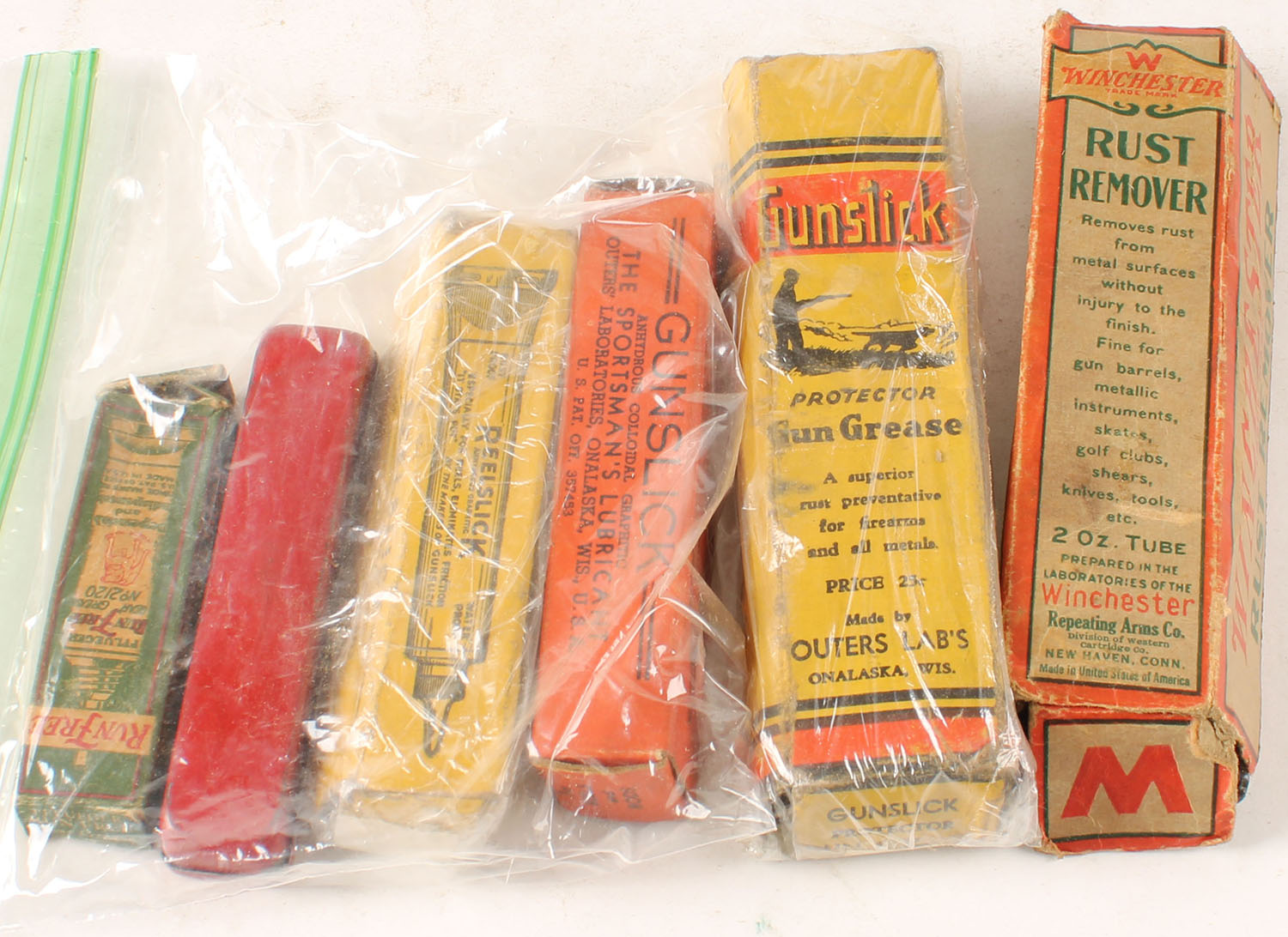 Lot of gun cleaning tubes, grease, rust remover and others. Grade: Good - Value: 2 to 10