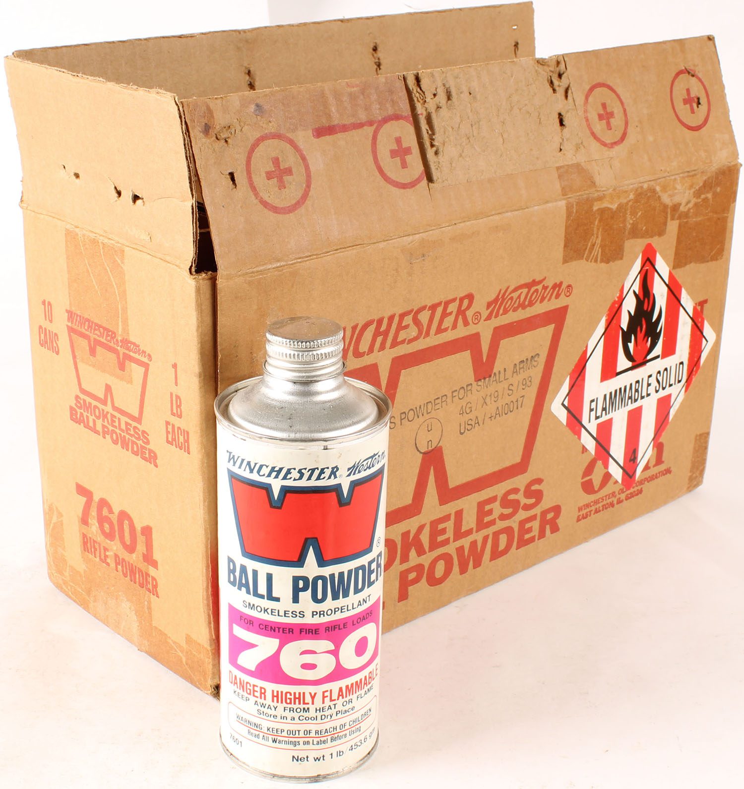 Winchester-Western, 760 Ball Powder, Smokeless Propellant for Center Fire Rifle Loads, Partial Case (9 bottles), bottles are FULL & SEALED. Grade: Excellent - Value: 50 to 400