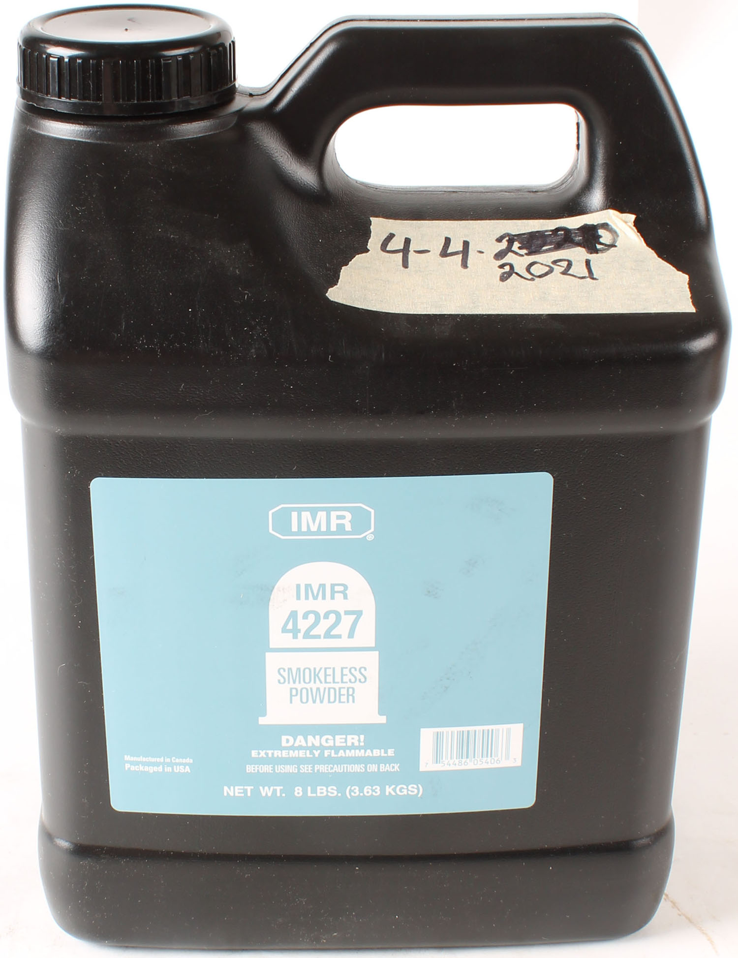 IMR. 4227 Smokeless Powder, 8lb plastic jug, jug is full or mostly full. Grade: Excellent - Value: 40 to 200